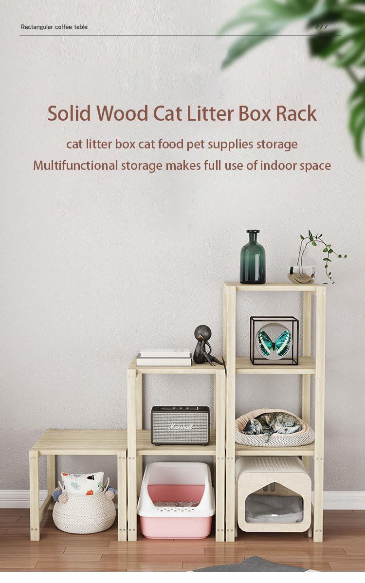 اپنی مرضی کے مطابق بلی لیٹر باکس ریک بلی چڑھنے ریک پالتو جانور سٹوریج ریک فیڈر لکڑی فریم ٹھوس لکڑی بلی گھونسلے کی تخصیص فراہم کرتا ہے