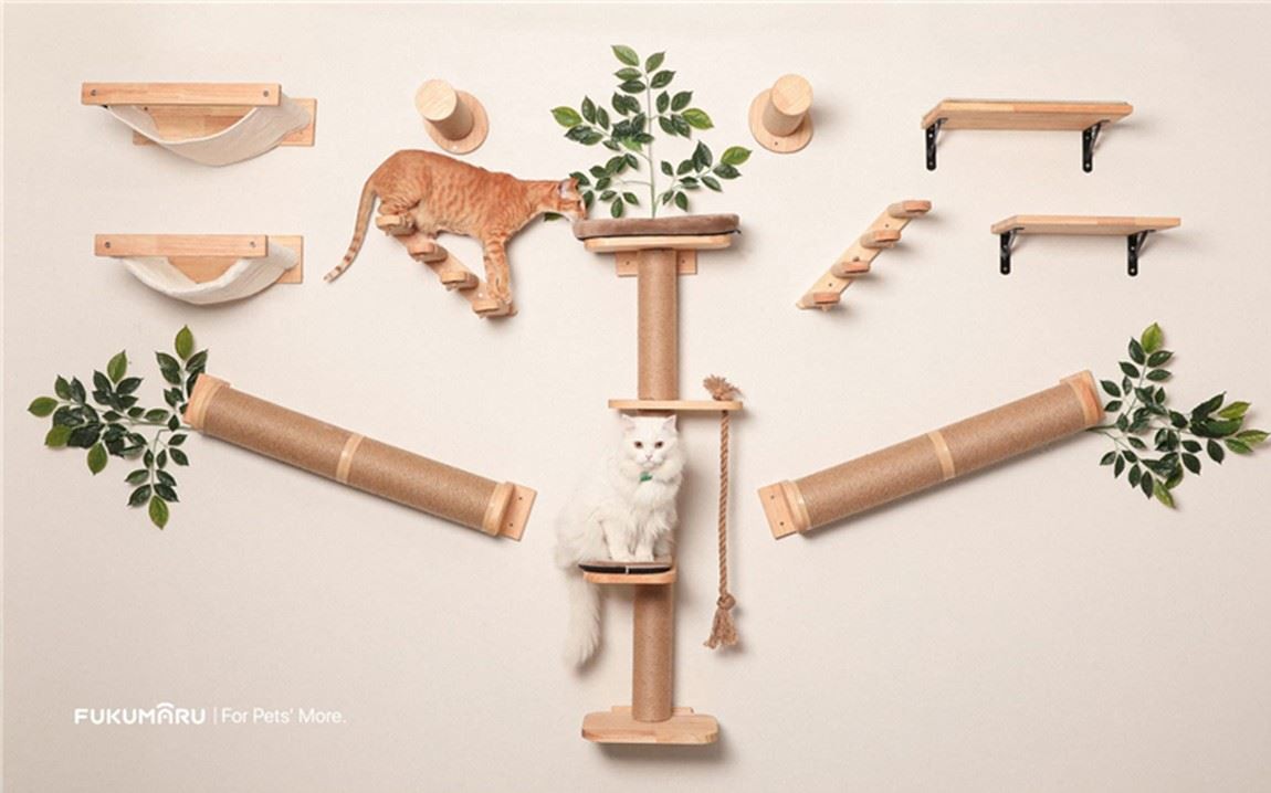 کیٹ کلائمبنگ شیلف وال ماونٹڈ، بلیوں کے پرچ پلیٹ فارم کی فراہمی کے لیے جوٹ سکریچنگ کے ساتھ چار قدمی بلی سیڑھی